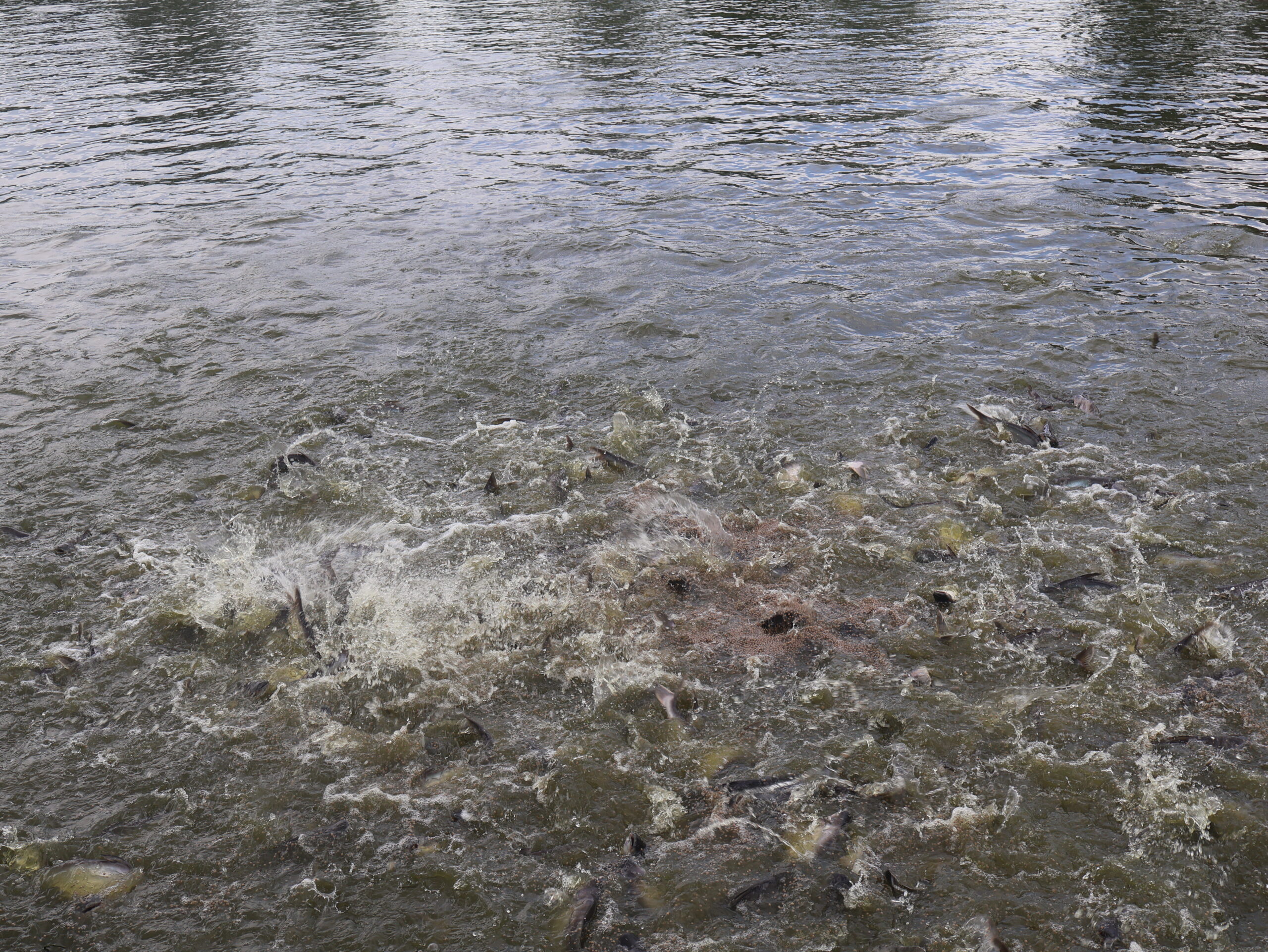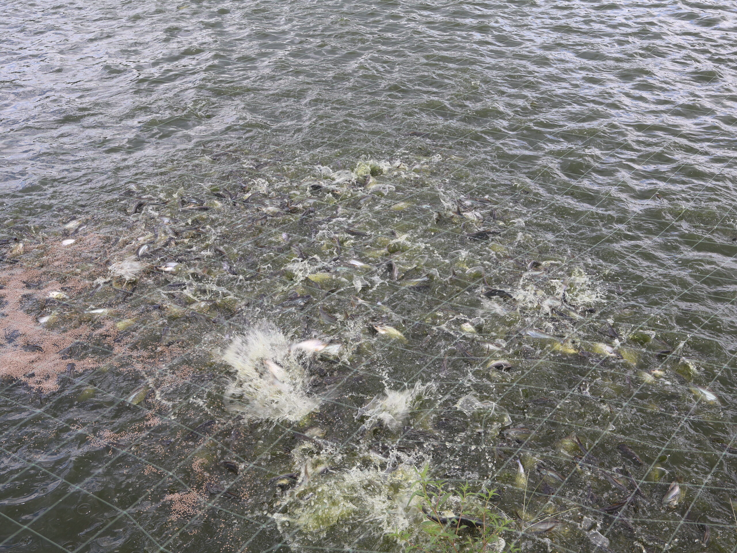 Primarily, Pangasius species of fish are farmed in these ponds.